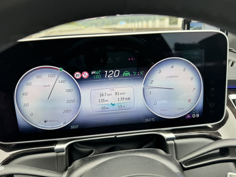 S300hの時には120キロ走行では燃費がかなり落ちたのですが、S500は燃費がそれほど落ちないのはありがたいことです。