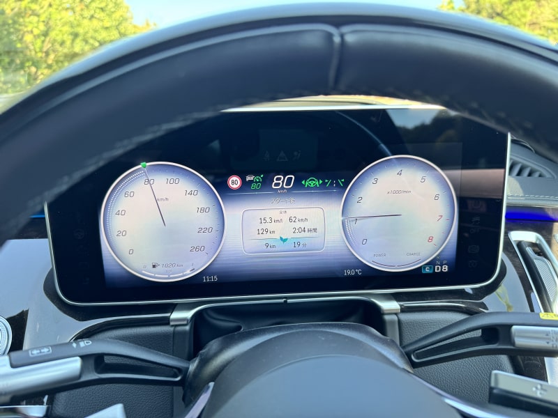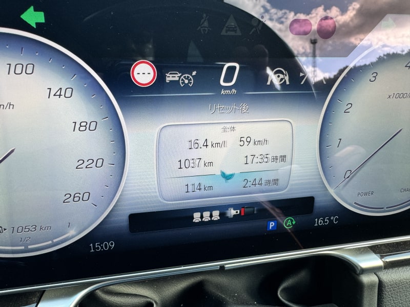 買い替え前に乗っていたW222のS300hロングの燃費は高速道路では20キロ/リットル以上となりましたので1回の給油で1,500キロを走れた事には及びませんが、S500のメインの利用が旅行によるロングランの私にとってはありがたい燃費の結果となりました。